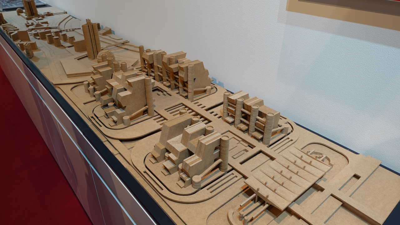 [P03]北マケドニアパビリオン(コモンズ-A館)にて展示されている、スコピエ再建計画の模型。この計画には日本人建築家・丹下健三氏が携わった